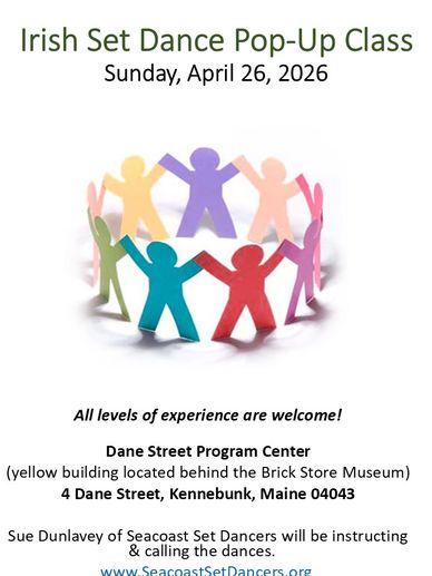 Join Sue Dunlavey of Seacoast Set Dancers for an Irish Set Dance Popup Class on Sunday, April 26th. Visit www.seacoastsetdancers.org